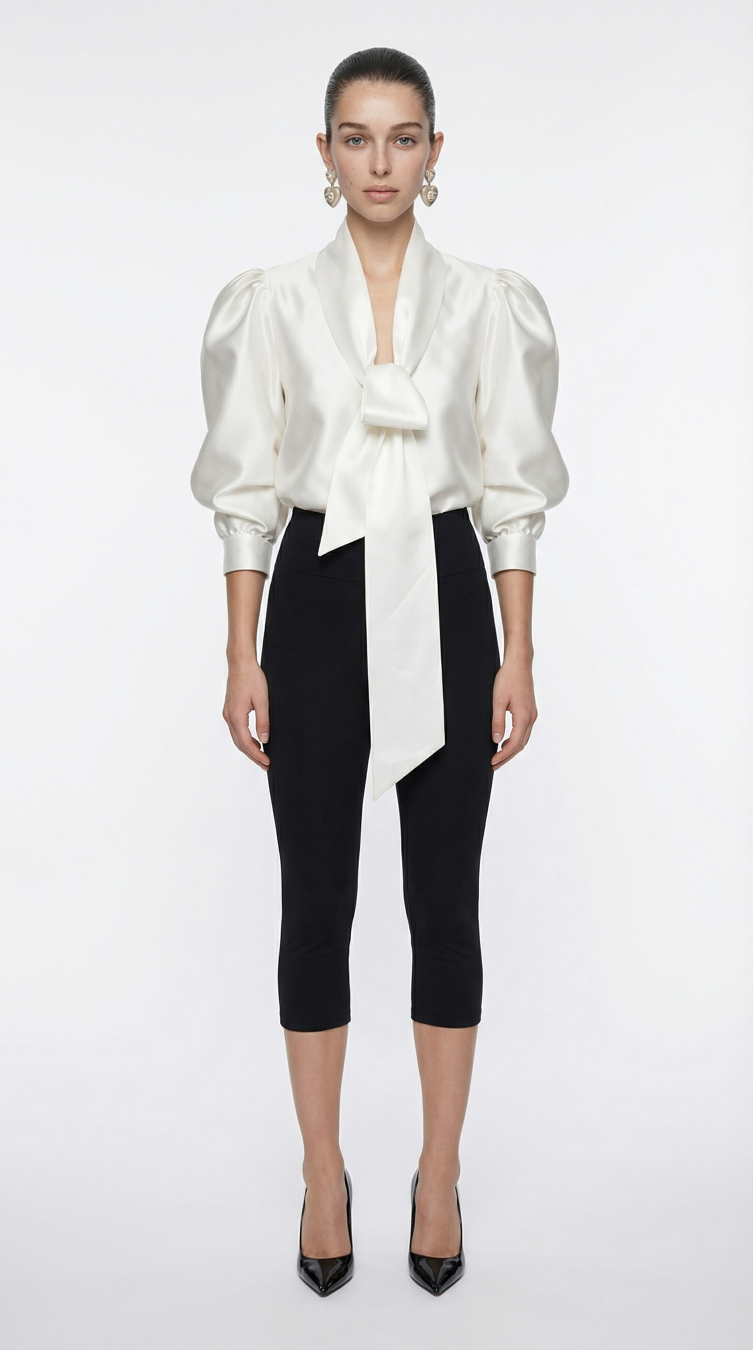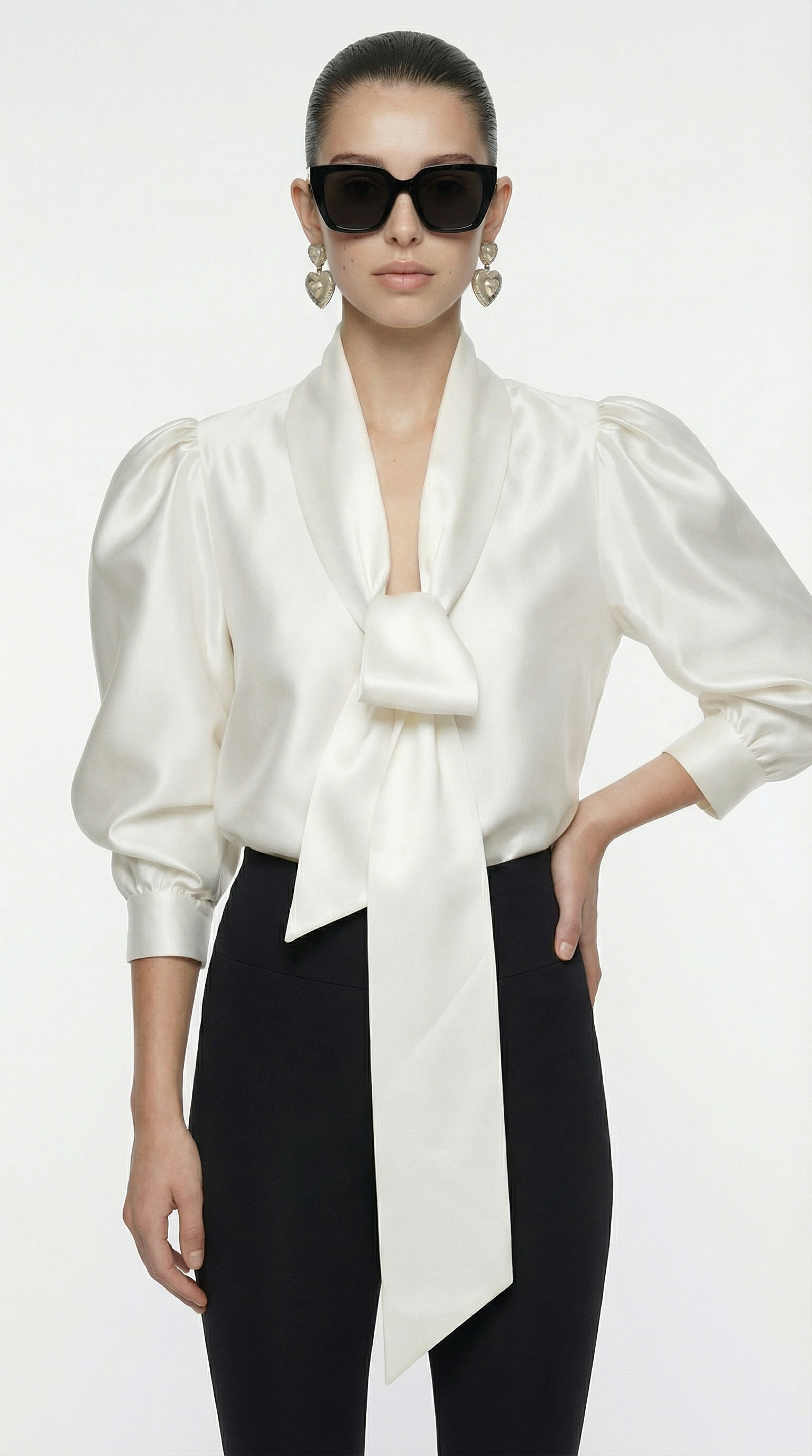 Блуза с объемным рукавом три четверти и шалевым воротником, можно завязать объемный бант, что сейчас очень актуально.