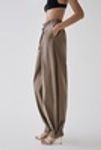 Брюки с патами и рядом пуговиц снизу, которые позволяют менять ширину низа, играя с формой и объемом изделия, дополняют образ с рубашкой.