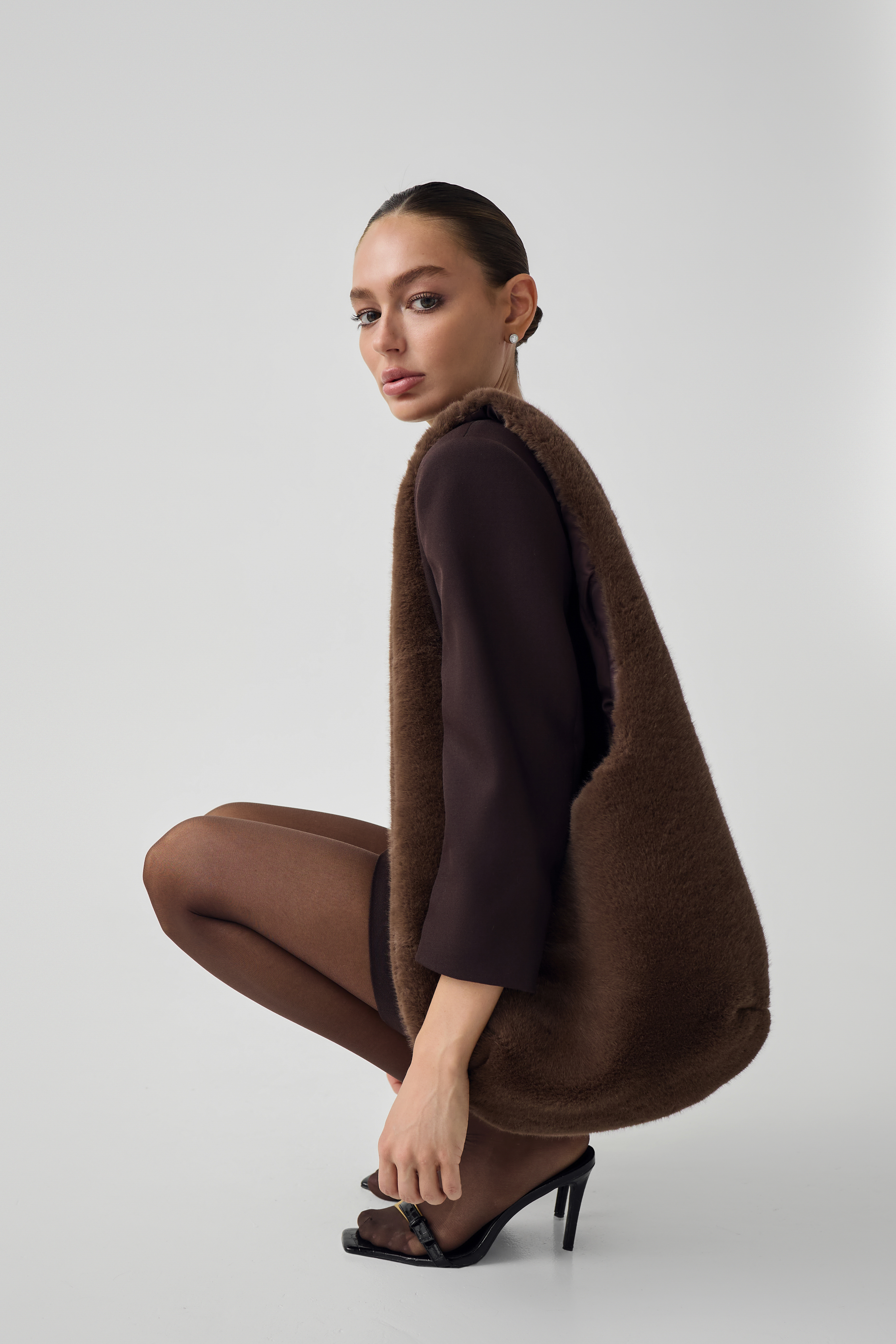 Воротник выполнен из плотного благородного меха, его можно носить отдельно, сочетая со своими вещами гардероба.