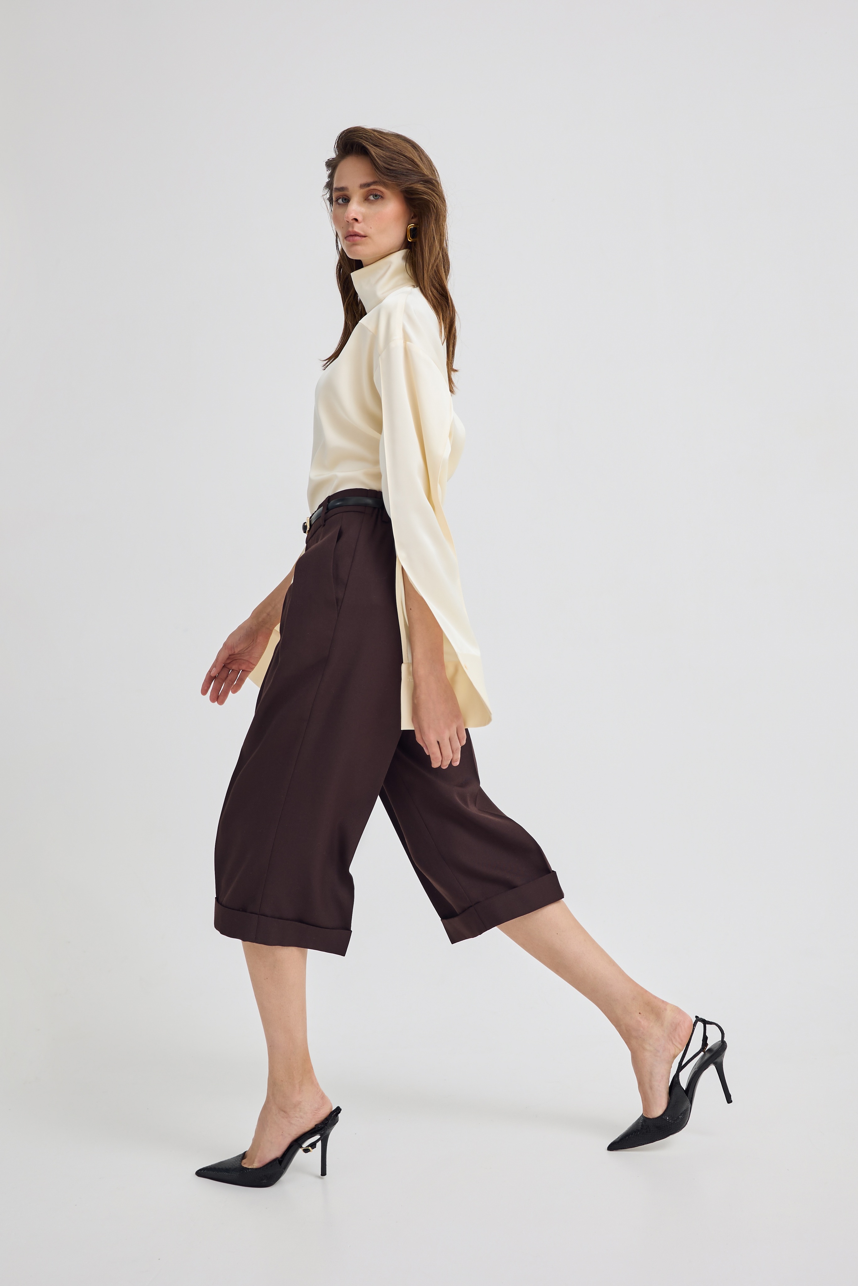 Наш бестселлер - кюлоты из шерсти в сочетании с укороченным жакетом с акцентными деталями в новом шоколадном оттенке шерсти.