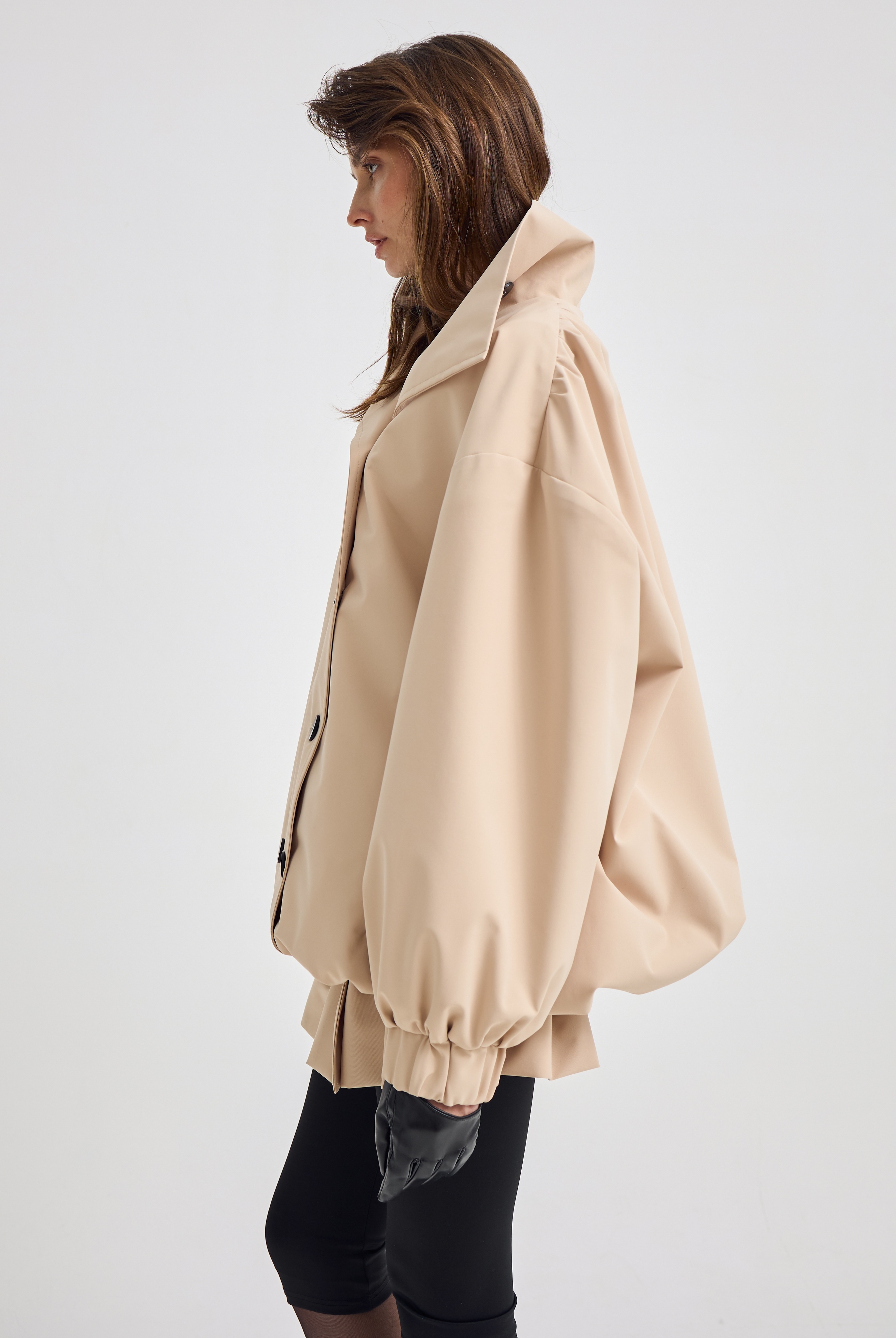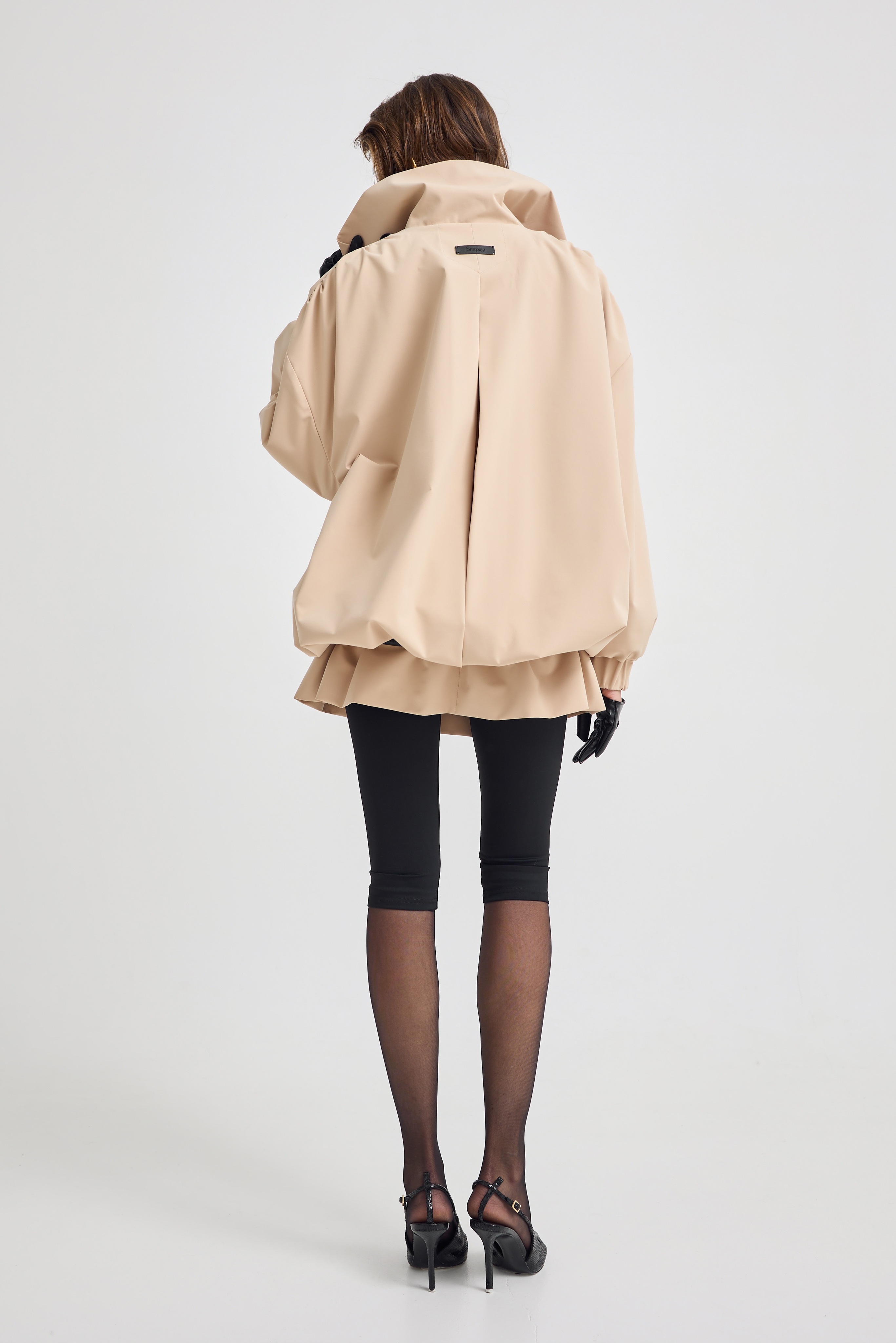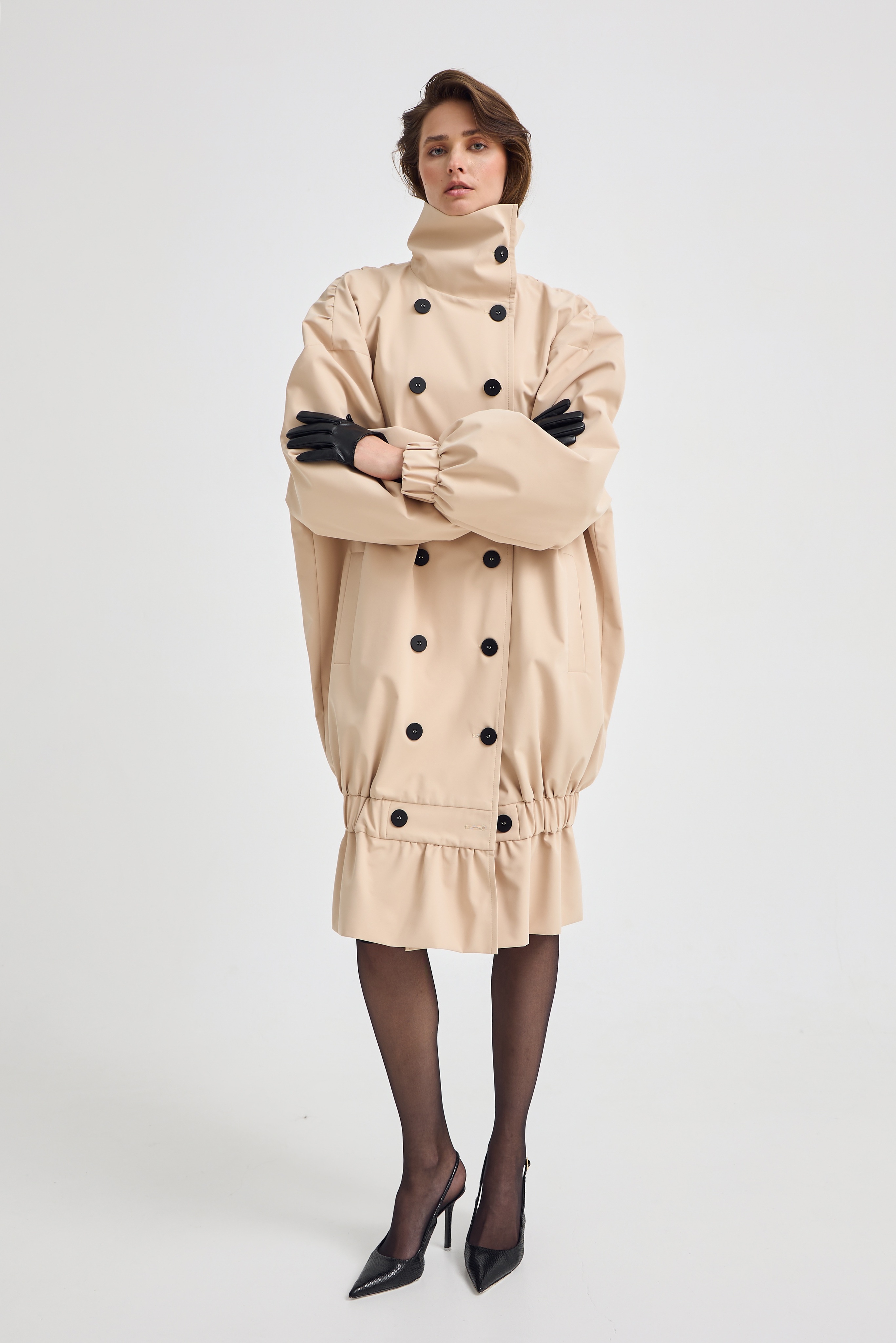 Резинка по низу позволяет трансформировать модель в укороченный вариант, меняя настроение образа за секунды. Носите его как классический тренч или создавайте более динамичный, акцентный силуэт.